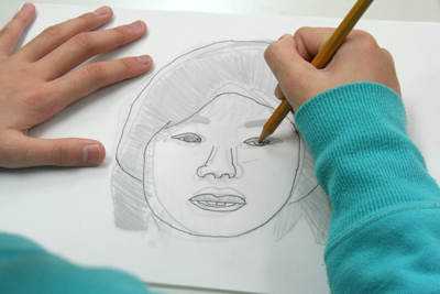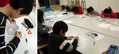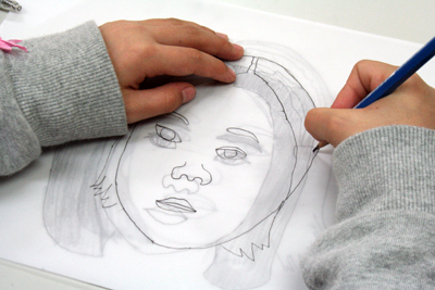 そして自分の写真をトレース。ここまでは先週の制作とそれほど変わらんから、ジュニアたちにはお手のもの。