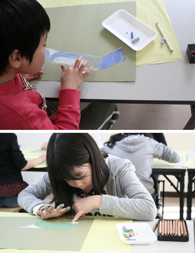描きながら「何か変だ」「形がおかしい」って言っとるのがけっこういたぞ。しかしなかなか直せない。もちろん子どもたちだって、まっすぐなものはまっすぐだとわかっとる。だが、わかるのとできるのは違うのだ。子どもは見てる範囲が狭かったりするから、描きすすめるうちにいつの間にか全体の形が部分の集まりになっちゃうんだよな。部分の集まりが全体ではないってこと!
