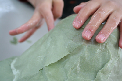 適度な水分量、力加減がわかるとこの通り。かなり頑丈になる。だいたい3層から多いところで5層くらい張りまくる!