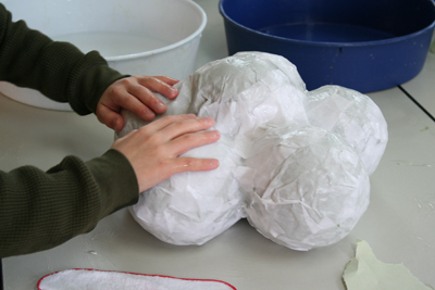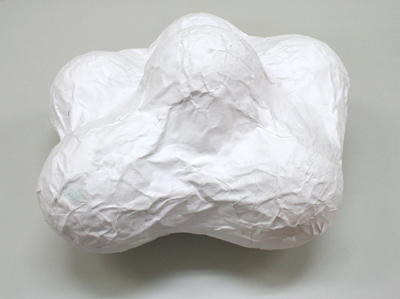 さらに上から、くしゃくしゃにして、しわしわにして、たっぷり水分を含ませた白い紙を貼付けてどうにか雲らしきものが完成。