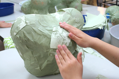 まずは下地になる紙をぺたぺた…