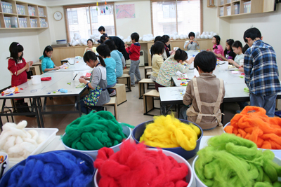 で、今週はあめが降る予定…だったが、ぬぁんと教室に登場したのはカラフルな羊毛!