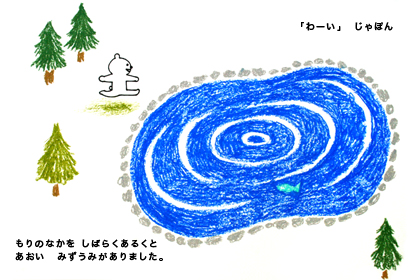 妙に青い湖が気になる… どうなるしろくまくん!