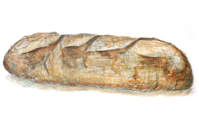 【高1】なんと!自分がモチーフのパンをどういう角度で見下ろしているのか、目線にアングルが加わっておる。やるなー。