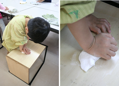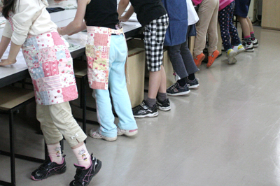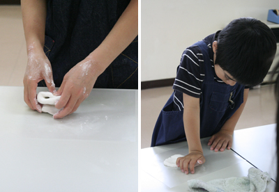 キッズの最高学年のプライドがある小学校2年生、そして先生たちのただならぬ気迫を感じてか小学校1年生たちも、今回はしっかり結果を出した!色を均一に練ることができたら「合格!」「だんごにしてよし!」