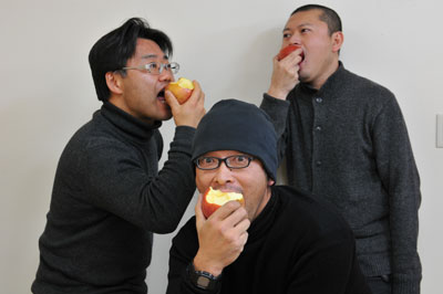 毒林檎バッジが意外に人気。 よいこのみんなのマストアイテム。 打ち上げのサービスカット 毒林檎まるかじりの林檎頭(あっぷるず)の図 これでもくらえ!