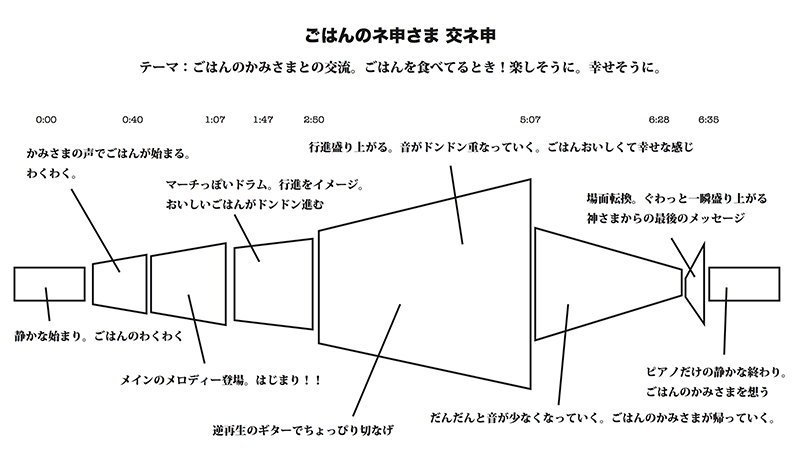指示書というのはこんな感じ。▶ごはんのネ申さま展の会場BGMにつかった指示書