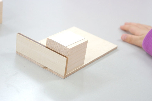 さらに引き出しの上には、扉を開閉するタイプの空間を作り足します。ここが一番むずかしい。木のパーツが大きくて「手でもってないと倒れちゃうよ〜!」「ああ〜手がもうひとつほしい!」サイコロ状のブロックをうまく支えにしながらどうにかクリア。