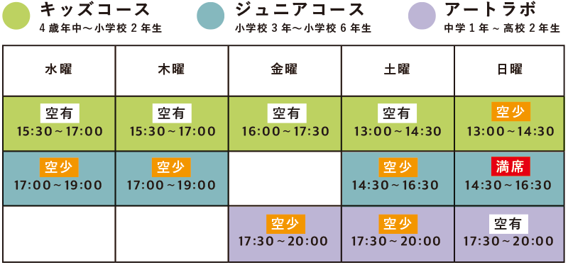*各クラスの席状況は随時変わります。詳細についてはお問い合わせください。