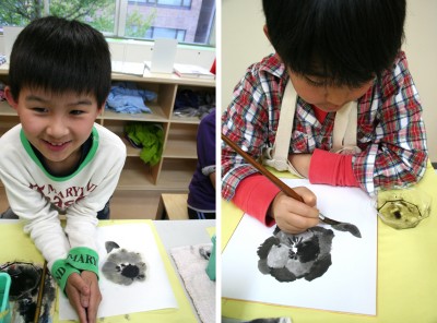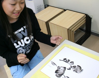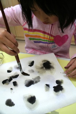 筆の先につける水と墨のバランスが何ともむずかしい。