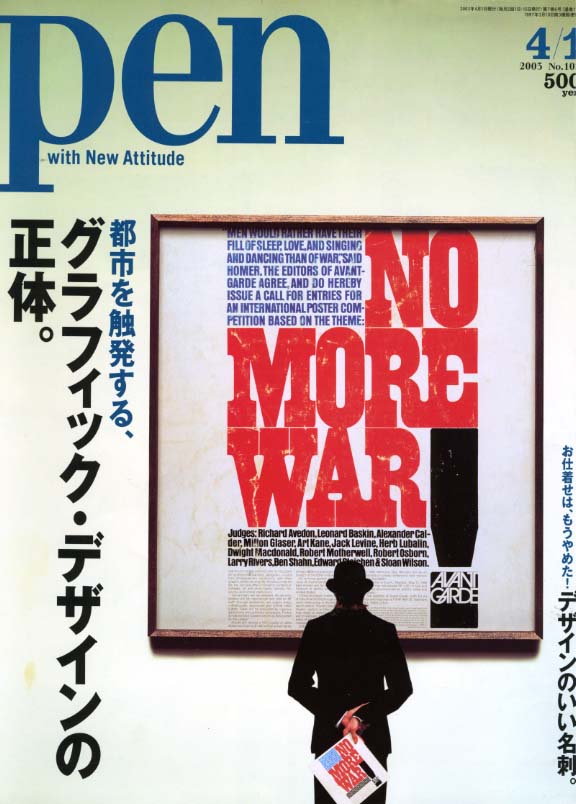 雑誌というのは、この時期にこれをやることによって、効果的に本を売っていく、というのが重要な使命でもあるんですけど、ちょうどこれがイラク戦争が始まる直前だったんですよ。それでここに「NO MORE WAR」と書かれていますけど…ちょうど60年代のベトナム戦争の時にグラフィックデザイナー達が立ち上がってやっていた熱みたいなものが…