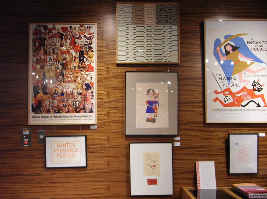 これはアメリカのアレキサンダー・ジェラルドというテキスタイルを中心に手掛けていたデザイナーがいまして、その人の作品と、もう少し踏み込んだ…例えばここにある女の子のは、娘さんの誕生日にジェラルド本人が切り絵で作ったもの。あとイームズから貰った手紙や、ホテルに滞在してる時に描いたラフスケッチや…そういうかなりプライベートなものも展示しながら、中で動いてるものがどういう風に表のデザインに影響を与えているかというところを紹介した展覧会です。