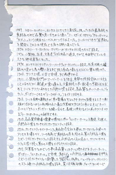 柳本  ヴィンテージワインてのがありますよね。ブドウの収穫量とか天候で価値が変わってくるというのがあったので、ジーンズもそういうのがつくれるんじゃないかと思い、小5の時に夏休みの自由研究にしました。過去100年ぐらいの綿の先物取引きの情報やリーバイスの株価など色んなデータを集めて、自分で分析した価値表を作ってみました。