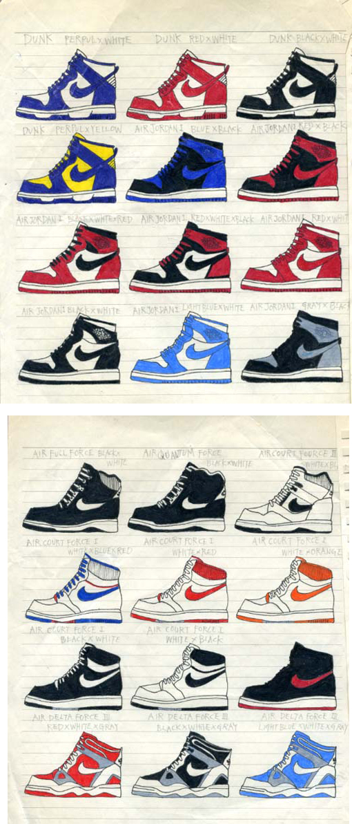 これはナイキのスニーカーが、どういうバリエーションがあるのかを日々、描き足していったものです。