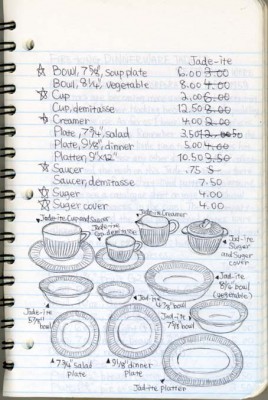 柳本  小学校2年生のときにアメリカで作られた昔の食器にも興味があって探すんですけど、コレクター用の本がないんですよ。当時の昔の雑誌を集めて広告などを見て、こういう形があったっていうのをイラストに描いてサイズを表記して、いくらで買ったかチェックリストを作っていました。