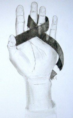 ラボのモチーフは手とリボン