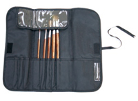 穂先を痛めないため、巻いて持ち運ぶタイプの筆ケースをおすすめしています。