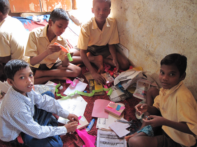 作ったインドの子どもたち(10〜13才くらい)は自己表現が楽しい、作るのが楽しいと話していました。インド以外でも、多分日本でも同じようなこともあるでしょうね。たとえばおじいちゃんおばあちゃんの作ったものがかわいいとか。そういう価値観のちがいを利用することで、ただかわいそうと助けるのではなく、自分を再発見したり、作る喜びを感じる中から現状を変える工夫や意欲が生まれて来ることのほうが素敵だと思うのです。