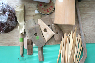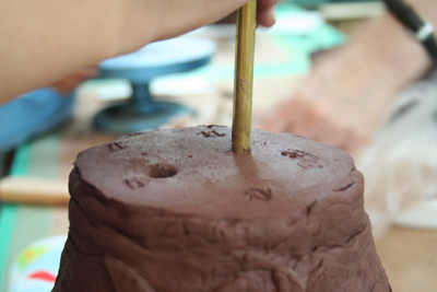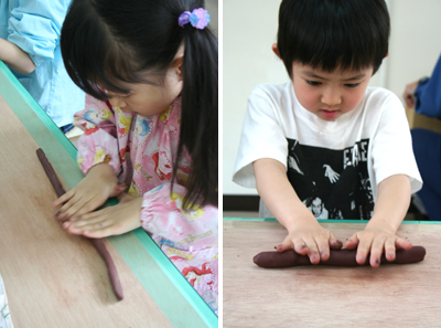 コンコン叩いて粘土の中の空気を抜いたり