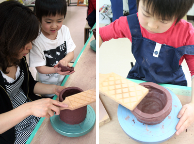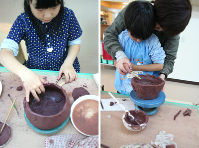 2010年5月5日、えふでもついに陶芸デビュー!最終的には食べるため…いやいや、植物を育てるためのマイ・植木鉢づくり。バジルやルッコラ、ほうれん草や水菜など、それぞれ育てたい植物に合わせた形の鉢を目指す!