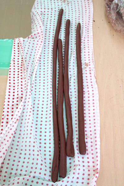 それをなるべく均一な太さになるようにヘビ状に伸ばし…