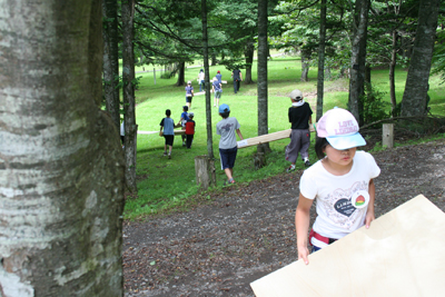 が、すかさず「次持ってこい!」「えええっ?!」容赦ないのだ。これを4〜5回繰り返し、さすがのリーダー・サブリーダーたちもヘバり気味。「むり」「もうダメ!」ちんまい子どもたちはすっかり音を上げておったが、こりゃ体力の限界というよりはどちらかというと精神力の限界だな。