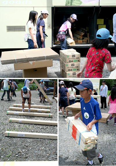 テント資材や荷物の運搬つーても普通じゃない。特に今年の資材は角材やベニヤなど重い上に持ちにくいものが多い。