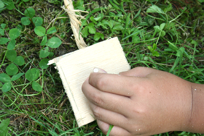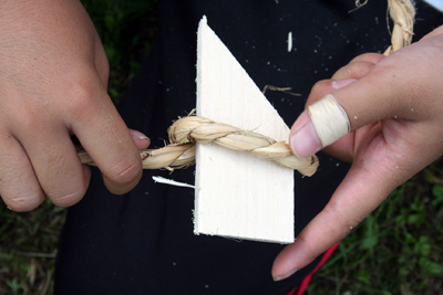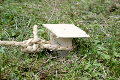 ロープが抜けないようにと考えたのか、地面に刺した後フタをかぶせるようにして釘をコンコン。なかなか手が込んでるが