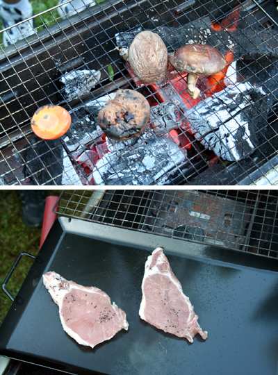 すかさず「のこぎりランキング!」4位の竹組は特大マシュマロをげっと。「枝拾ってこい!」小枝に刺し、直火で焼いて食べるとすこぶるうまい。3位の栗チームには「焼き芋を進呈!」じっくり焼いて丸ごとパクリ。2位の桃組にはなんと「地元の名産、白老牛でございます!」大歓声。かたまりを串に刺し、贅沢にどうぞ。