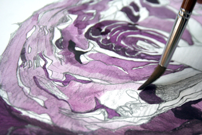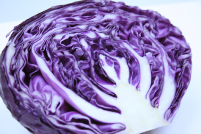 ラボにもたまにはすげー色を使わせたくなったから…とりあえずそのへんの八百屋でいちばんデーハーだった紫キャベツ。