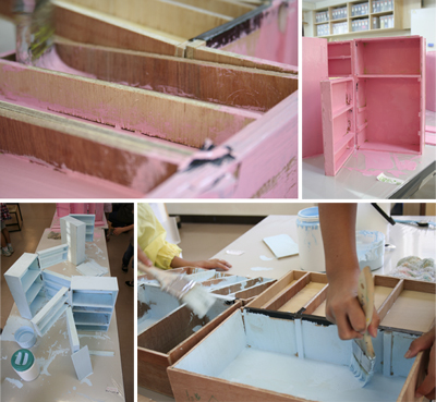 塗り終えた冷蔵庫を乾燥させつつ、今度は中身の制作。