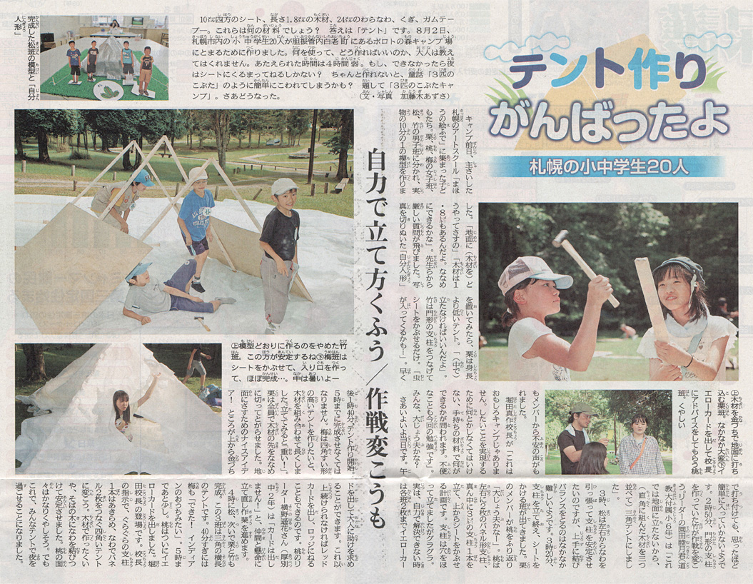 今日の北海道新聞夕刊に、夏休みの「こぶたキャンプ」レポートが。