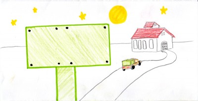 看板を通りすぎてくのね。わはは。二重構造になっててくらくらするぜ。