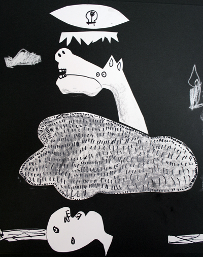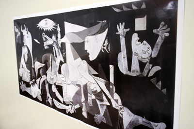 しかしこれまたややこしくってこんがらがっちな作品である。パズルのようにピースを手がかりに描き進めて、じりじりとゲルニ化。