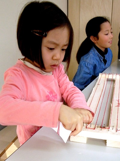 はじめはひと目ひと目確認するように進めていたが、10段もやればみんなコツをつかむ。