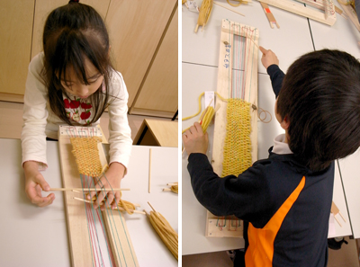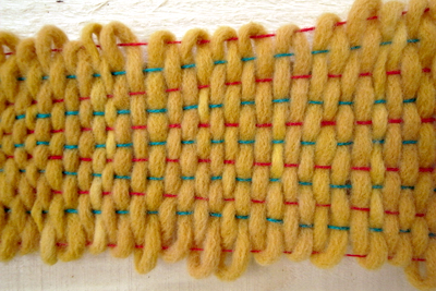思えばこの黄色い糸は玉ねぎ染めから織り機の釘打ちを経て、ここまで来たのだ。すげ。