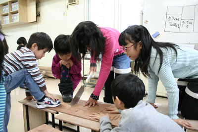 キッズはのこぎりさすがに無謀だから、同じ時間帯のクラスは合同授業にしてみたぞ。切るのが無理そうであればジュニアに頼むだ。