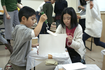 ジュニアはのこぎりの使い方とか、こないだワシにいいだけしごかれたからの。鍛えた成果がここで出た。さらにやすりをかけて、ジェッソ塗るところまで。