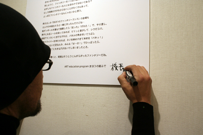 そんでもって明日からワシはファンタジー校長!いよいよ『押忍!手芸部と30cmの小人たち』で巨大な風船のフーテンのふうさんの皮を作るのだ!押忍!手芸部の部長とみやたまさんも無事上陸したよ。とりあえず展示の準備はサインをして一旦終了っと。