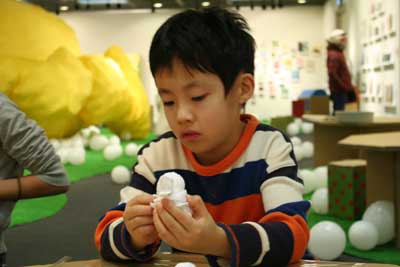 さらに明日以降に実施するワークショップは全3種類。こびとバッジは5号、6号、7号が出るぞ。中でも準備に余念がない『gg芝居』。ぬぁんとファンタジーランドの主・「風船のフーテンのふうさん」が、なぜあんなにデカいのかその謎が解き明かされるのだ!前代未聞のこの芝居、ストーリーからキャラまで完全オリジナルのおはなしでggのふたりが挑戦するぞ。見逃すな!