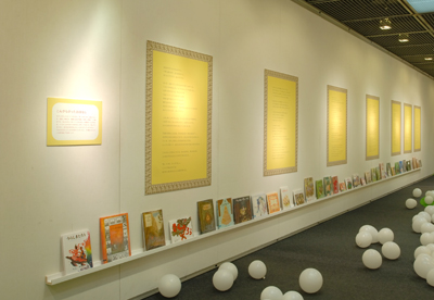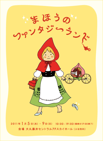 2011年1月5日から9日まで、大丸藤井セントラル7F・スカイホールにて開催した『まほうのファンタジーランド』展。子どもの本を中心に、様々な物語に触れ、見て、読んで、楽しむまほうの絵ふでのファンタジーの世界。会場の中央には特別授業『押忍!手芸部と30cmの小人たち』で制作した大きなクマの「ふうさん」を展示し、ファンタジーランドの開幕・押忍!手芸部のワークショップ「風船のフーテンのふうさん」には約200名を越す親子が来場しました。