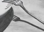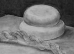 年末らしく、お飾りと鏡餅を描きました。画材は木炭と鉛筆。白っぽいモチと、バックの黒と、中間色のしめ縄、この3つ…
