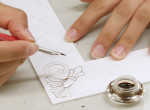 額縁のデザイン2週目。自分でデザインを考え、つけペンとインクを使って描いていく。凸凹のある額縁にみえるよう、パ…