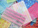 「もよう」についてのプログラムでした。薄葉紙というティッシュみたいなうすくて白い紙を、アクリル絵の具で色を塗る…