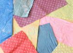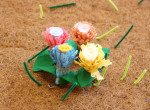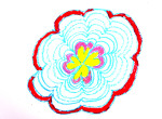 この週は、自分で染めた布を使った工作を行いました。切り込みを入れた布をクルクル巻いていくと、小さなコサージュの…