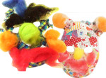 色や模様をつけてオリジナルのお面を制作。いろいろな模様の布やカラフルな羊毛をコラージュしていくと、だんだんユニ…