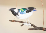 粘土で作った小鳥の体に絵の具を塗りました。仕上げに小鳥を木の枝にとまらせたら完成! They painted …