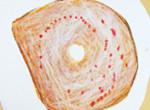 「食べたい食べたい!」おいしそうなドーナツをモチーフに絵を描きました。描いている最中も、教室中いいにおい。「お…